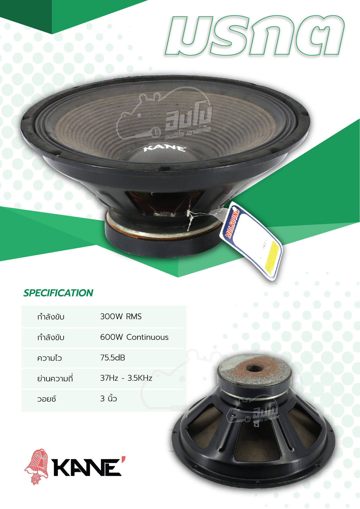 ลำโพง 15 นิ้ว KANE มรกต ดอกลำโพง เสียงดี ราคาถูก