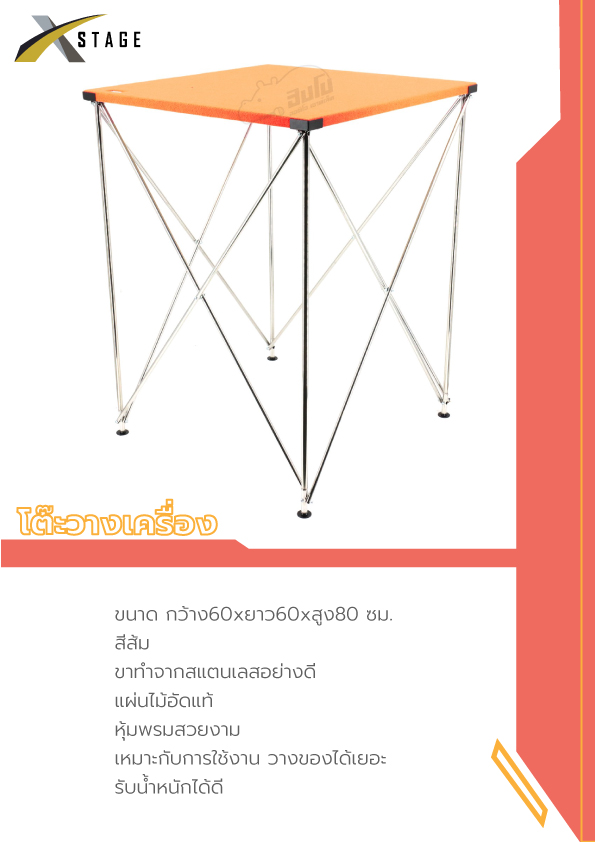โต๊ะวางเครื่องขนาด 60X60X80 สีส้ม มีขอบ/ตีนดำ ขาสแตนเลสกลม