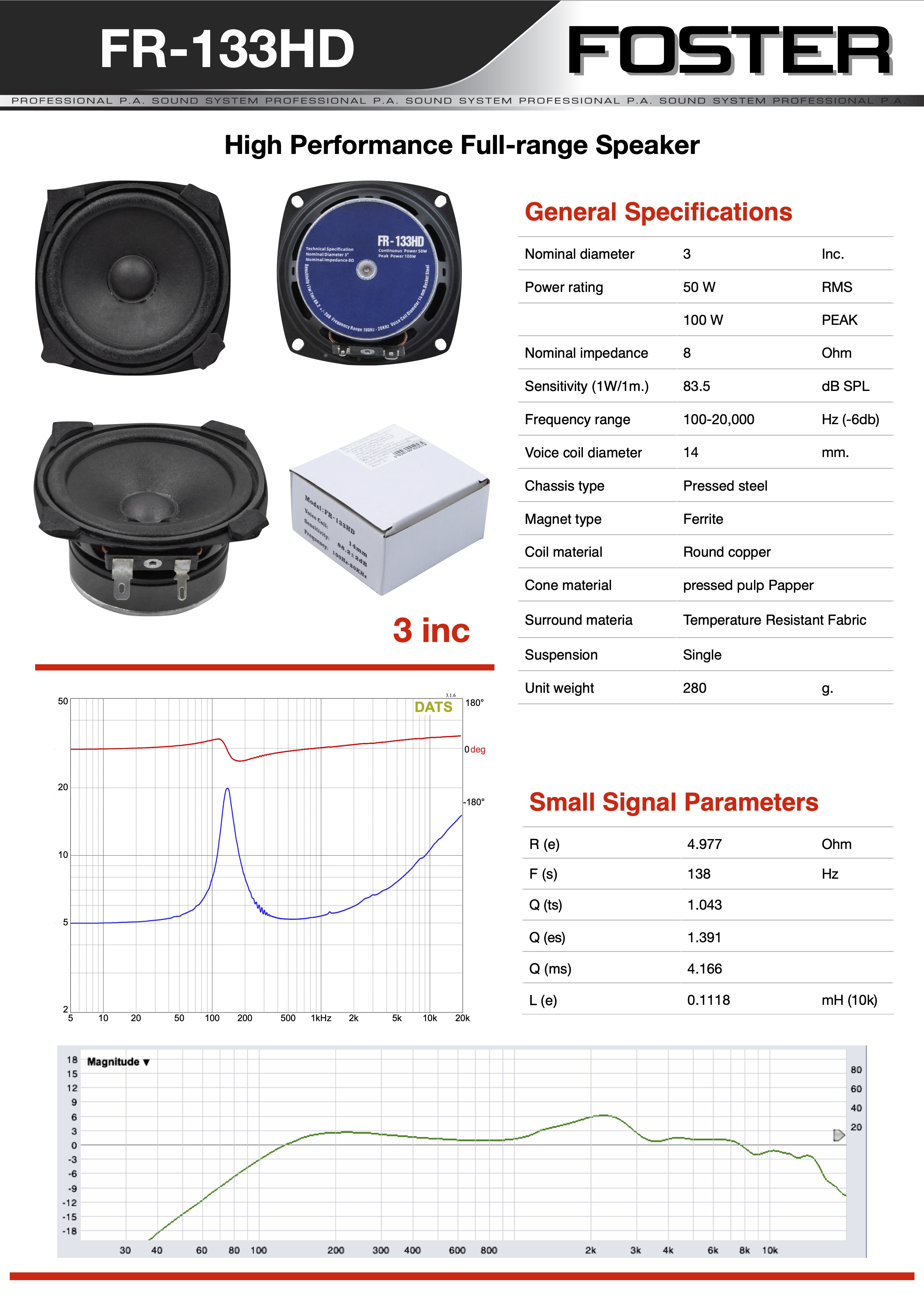 ลำโพง 3 นิ้ว FOSTER FR 133HD คอร์ลัม