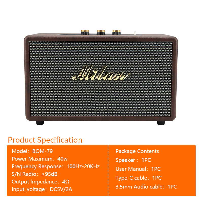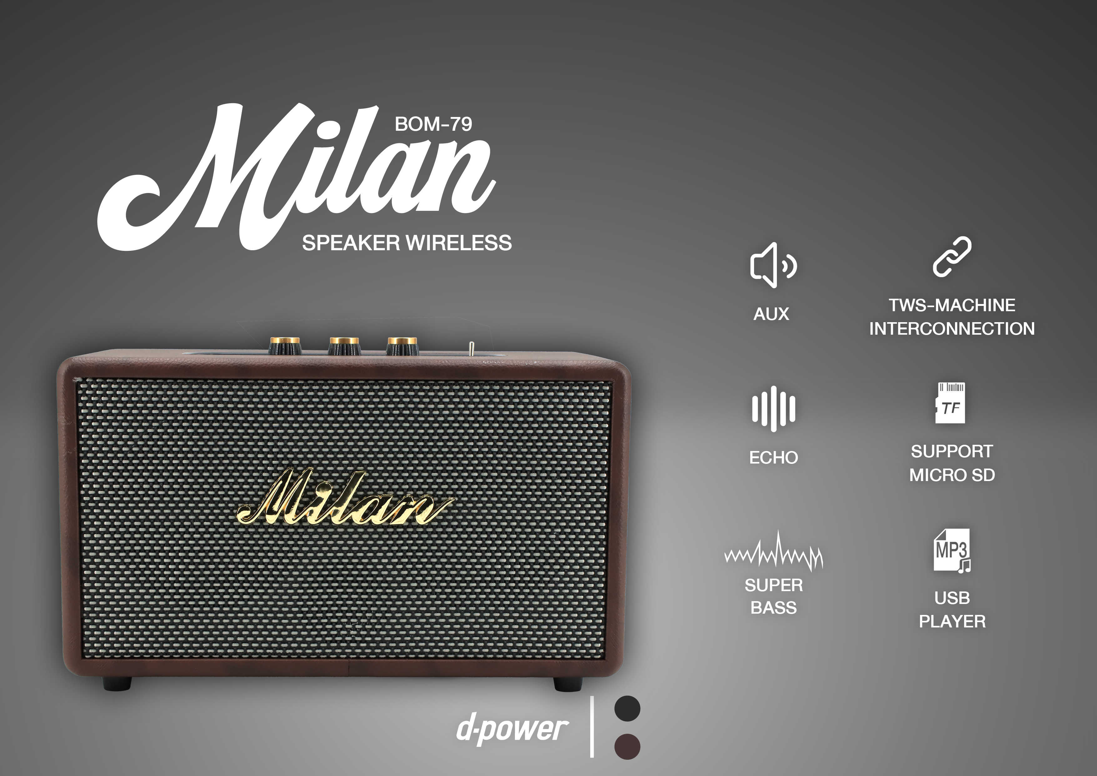 ตู้ลำโพง D power Bluetooth Milan BOM 79 40W (สีน้ำตาล)