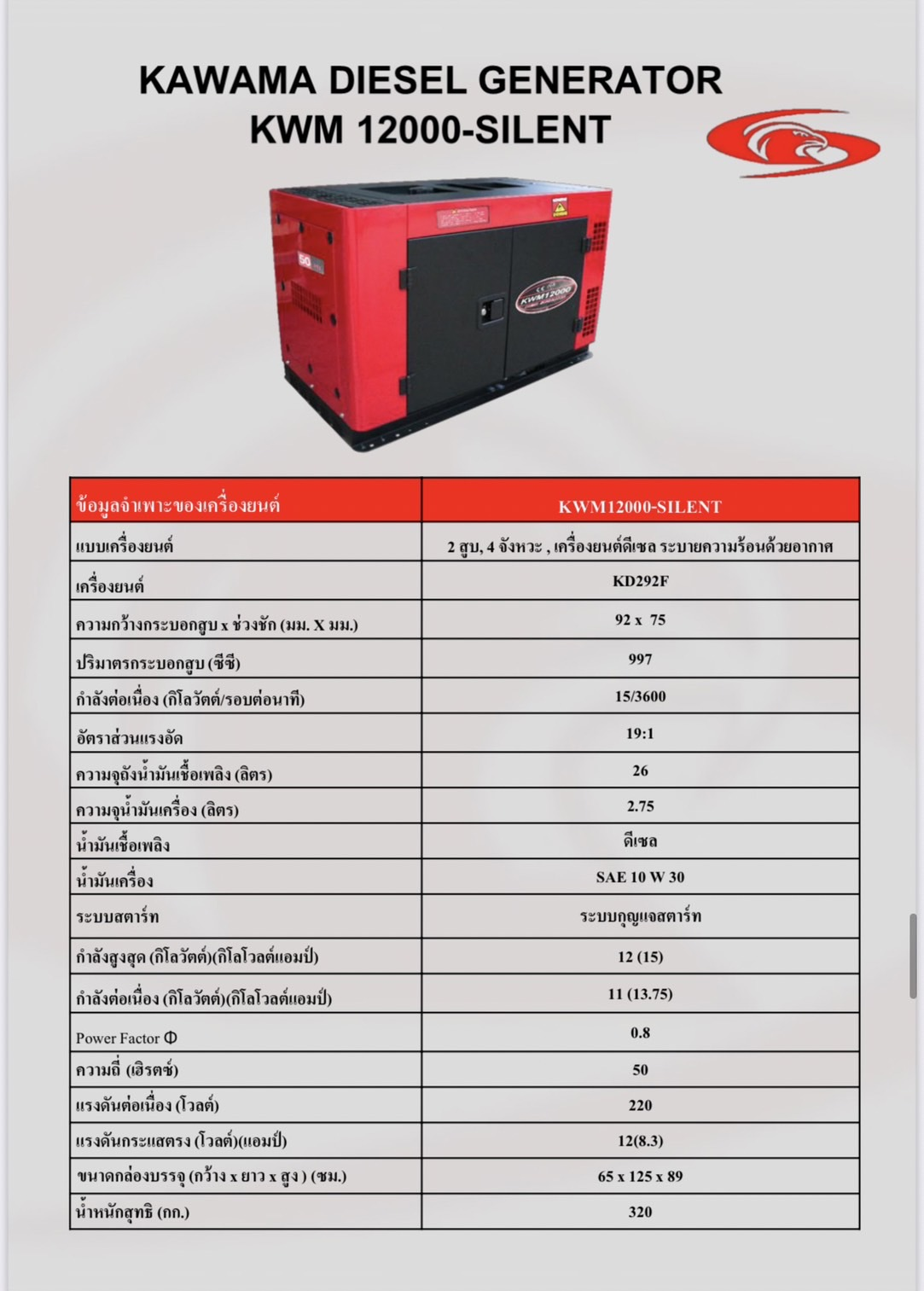 เครื่องปั่นไฟ KAWAMA 12000 Silent Type MAX 12.0 KW