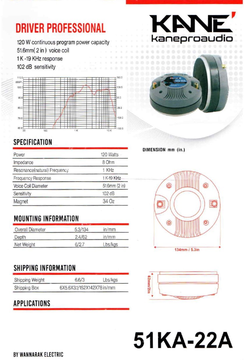 specification Impedance : 8 OHM SUPER DRIVER ไดอะแฟรม: Titanium