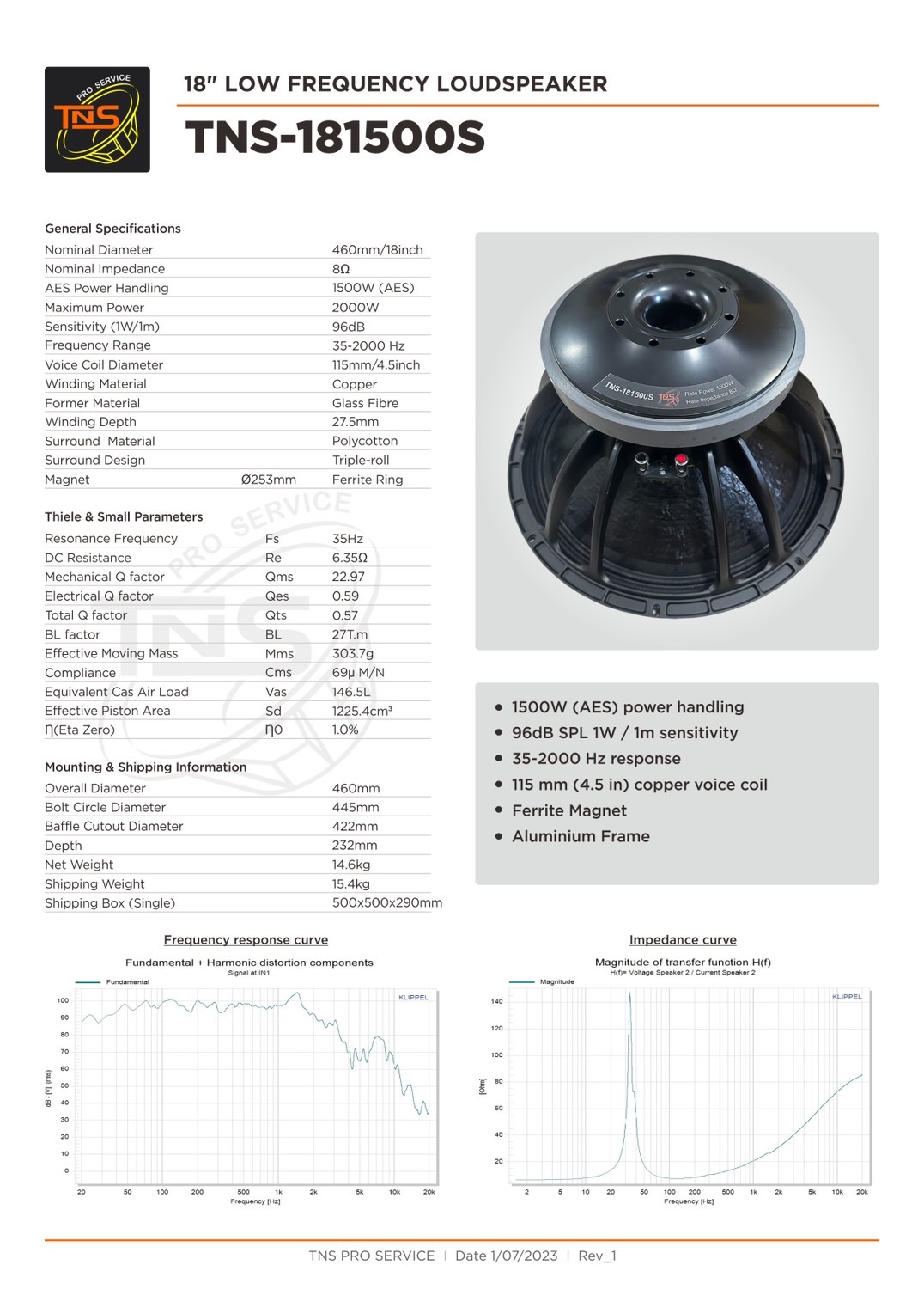 ดอกลำโพง 18 นิ้ว TNS 181500S