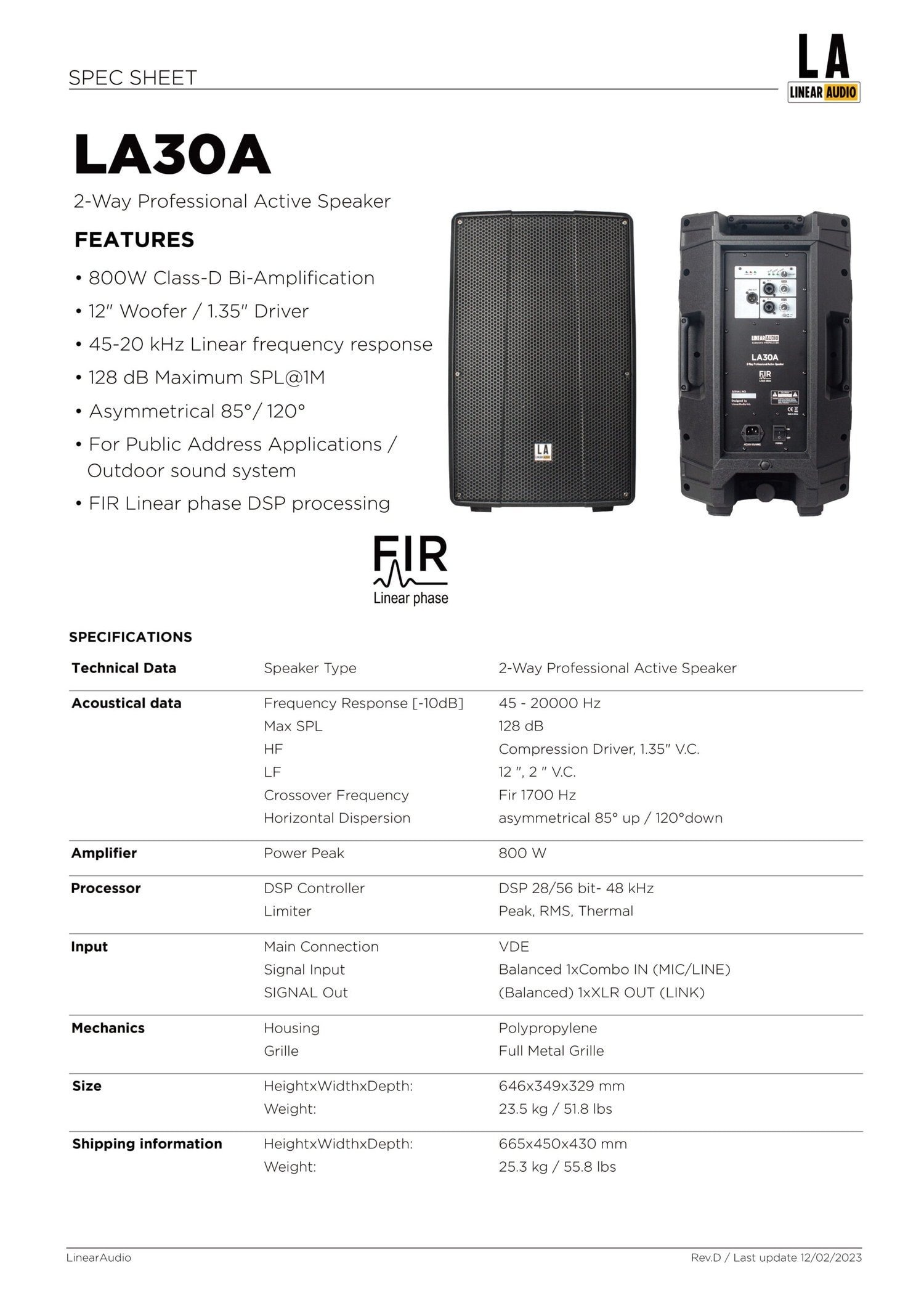 ตู้ลำโพง 12 นิ้ว Linear Audio LA 30A Bluetooth