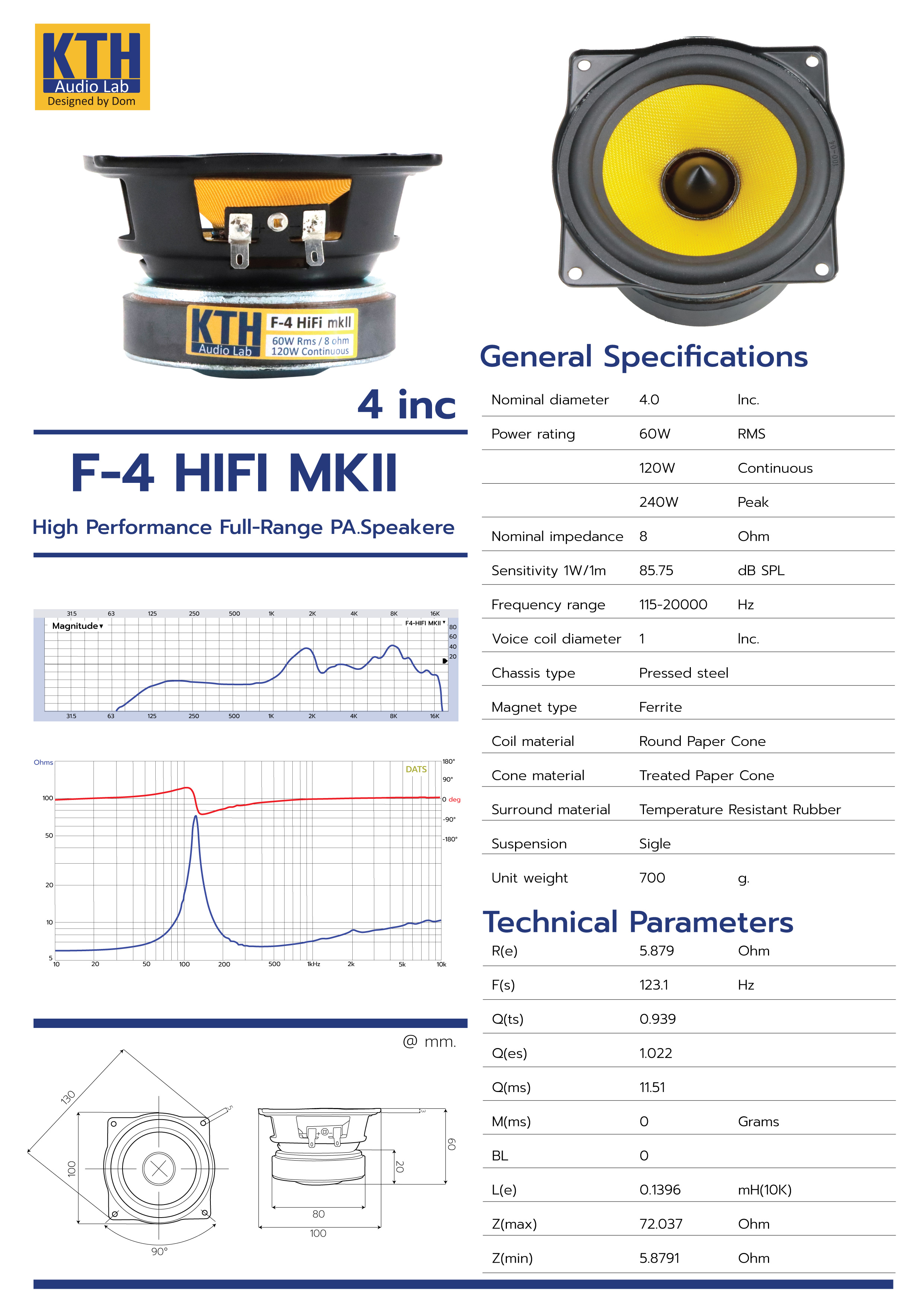 KTH F-4HIFI MKII ดอกลำโพง 4 นิ้ว 60W 8 โอห์ม ฟูลเรนจ์ คอลัมน์ Full range Speaker Woofer