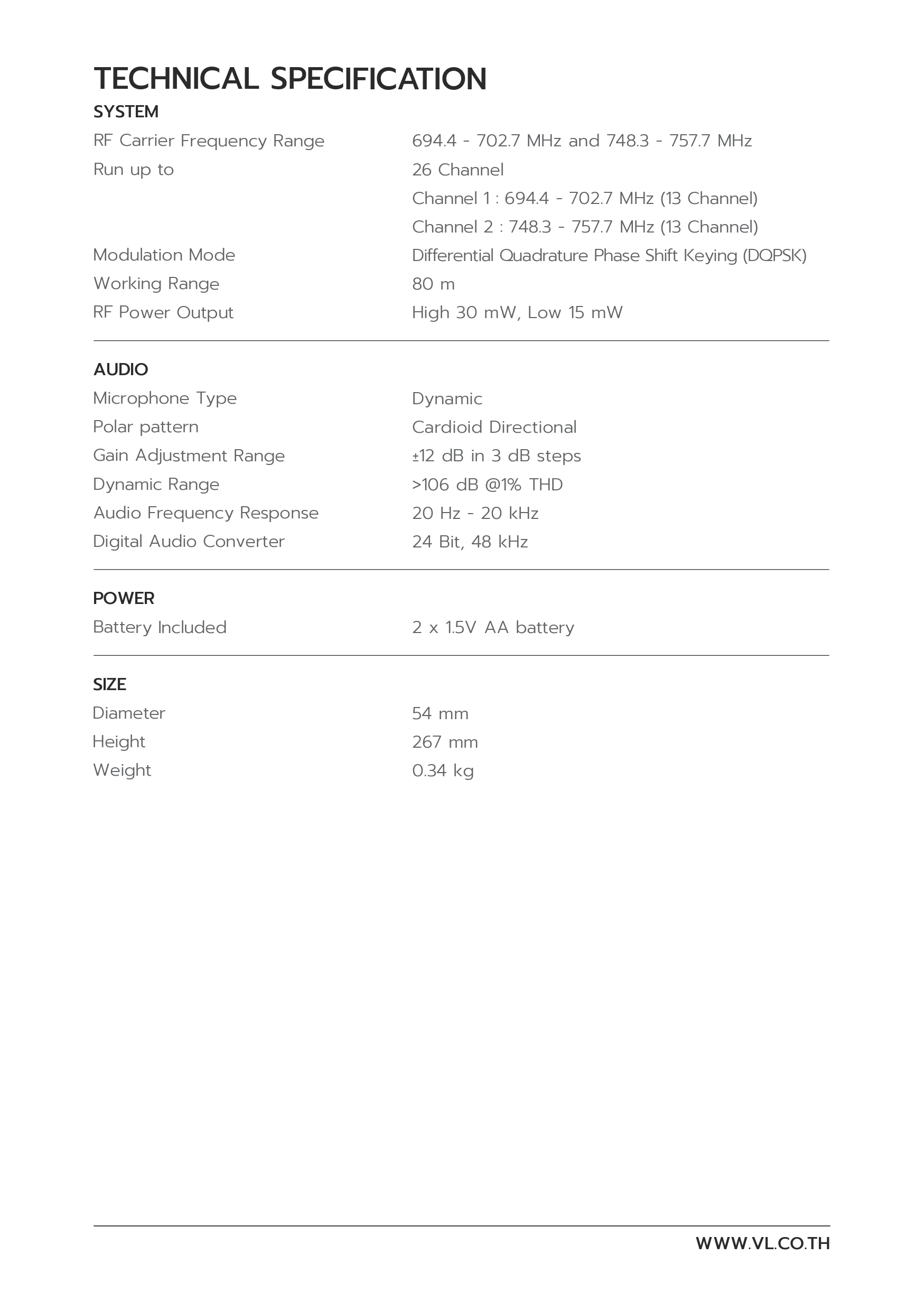 📊 สเปกทางเทคนิค (Technical Specification)🎛️ Receiver (Voice Mate R2)