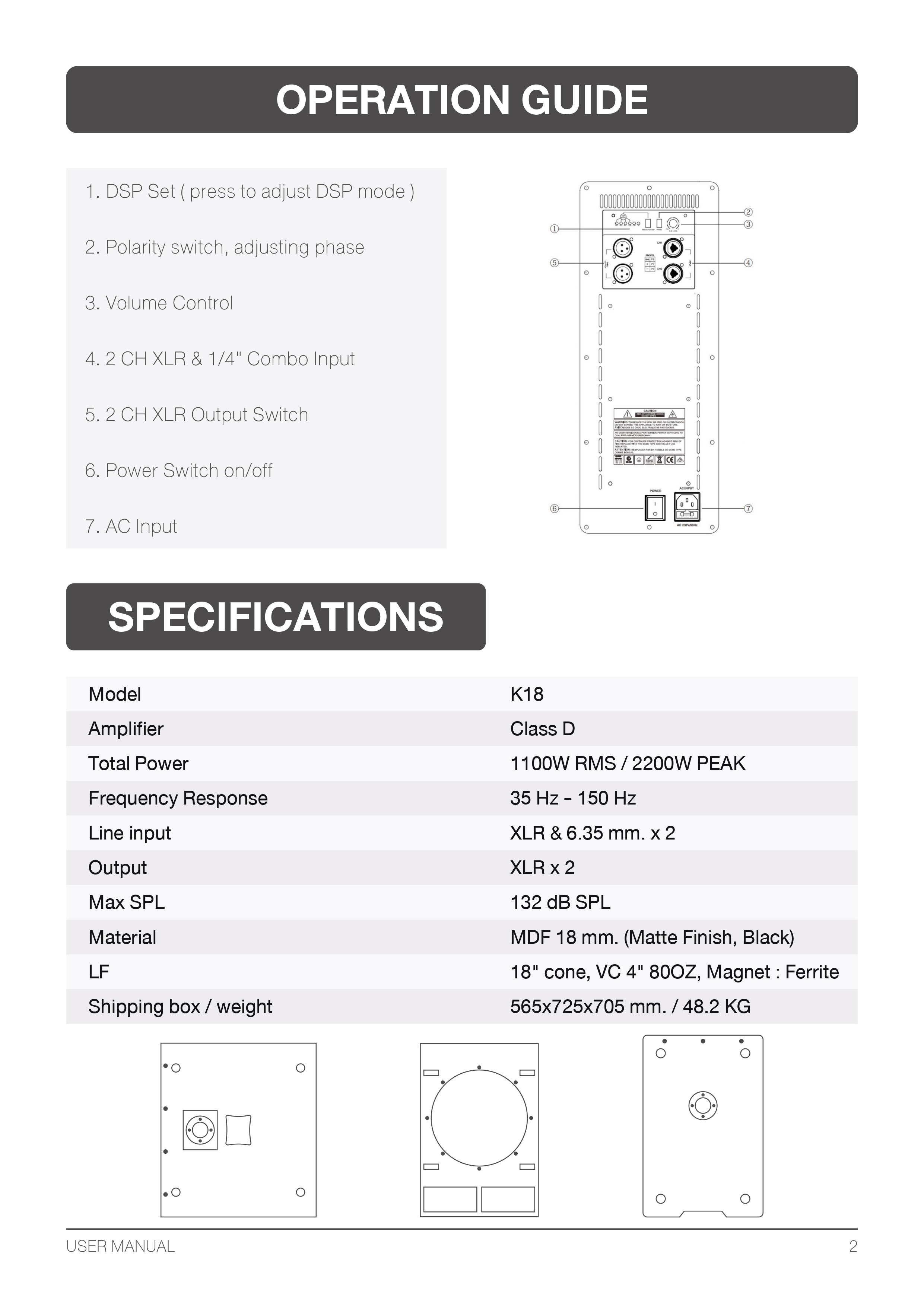 River Acoustics K18 คือซับวูฟเฟอร์แอคทีฟ (Active Subwoofer) ขนาด 18 นิ้ว พร้อมแอมป์คลาส D ในตัว กำลังขับสูงสุด 2200 วัตต์ ให้พลังเสียงเบสลึก หนักแน่น ควบคุมได้แม่นยำ และคงรายละเอียดเสียงที่ครบถ้วนแม้ในระดับความดังสูงสุดถึง 132 dB SPL