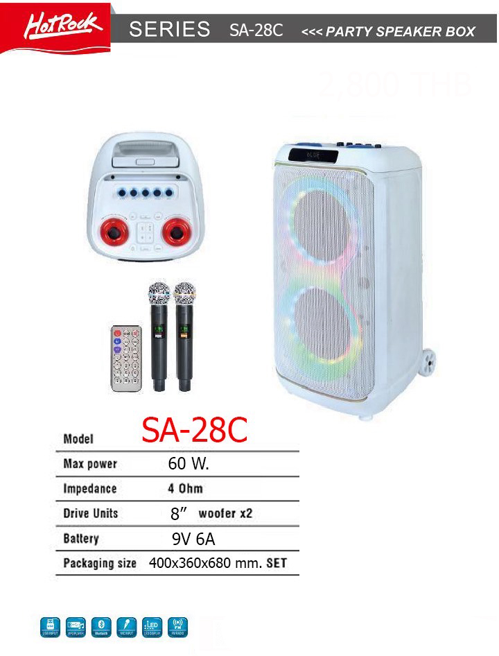 ลำโพงบลูทูธ HotRock SA-28C 60 วัตต์ | ไมค์ลอยคู่ | แบตเตอรี่ในตัว | ปาร์ตี้ครบชุด