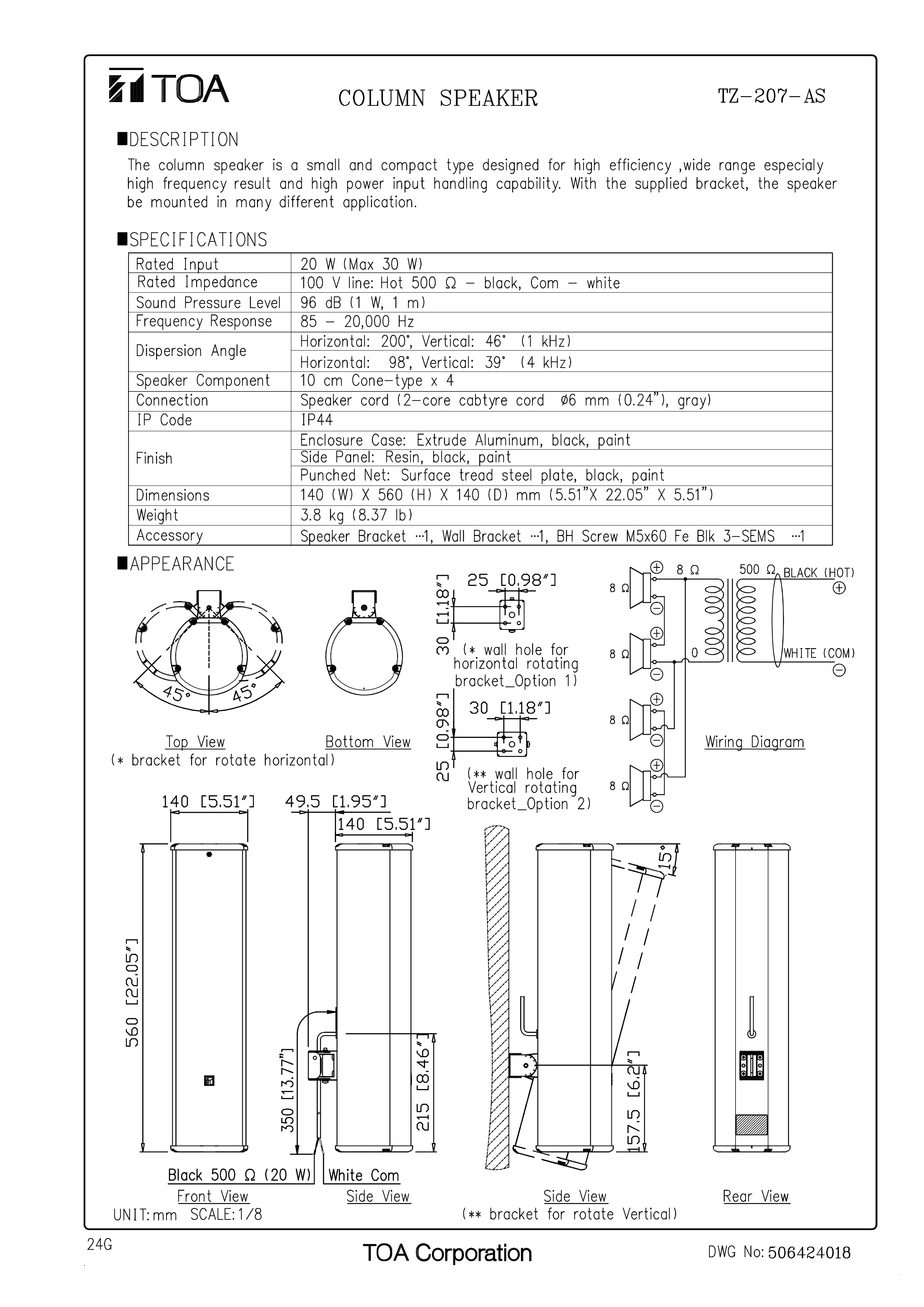 ลำโพงคอลัมน์ TOA TZ-207-AS⭐ คำอธิบายสินค้าTOA TZ-207-AS ลำโพงคอลัมน์คุณภาพสูงจาก TOA ออกแบบมาสำหรับงานกระจายเสียงที่ต้องการ ความชัดเจนของเสียงพูด, มุมกระจายกว้าง, และ รับกำลังขับสูงถึง 30W ตัวตู้ผลิตจาก อลูมิเนียมขึ้นรูป (Extruded Aluminum) น้ำหนักเบา ทนทานต่อสภาพแวดล้อม พร้อมขายึดติดตั้งที่หมุนปรับมุมได้หลากหลาย เหมาะสำหรับงานเสียงประกาศใน โรงเรียน, อาคารสำนักงาน, โรงงาน, สถานที่ราชการ, ห้างสรรพสินค้า, โถงประชุม, หรือพื้นที่ที่ต้องการเสียงกระจายกว้างและสม่ำเสมอ ⭐ จุดเด่นสินค้า (Highlights)