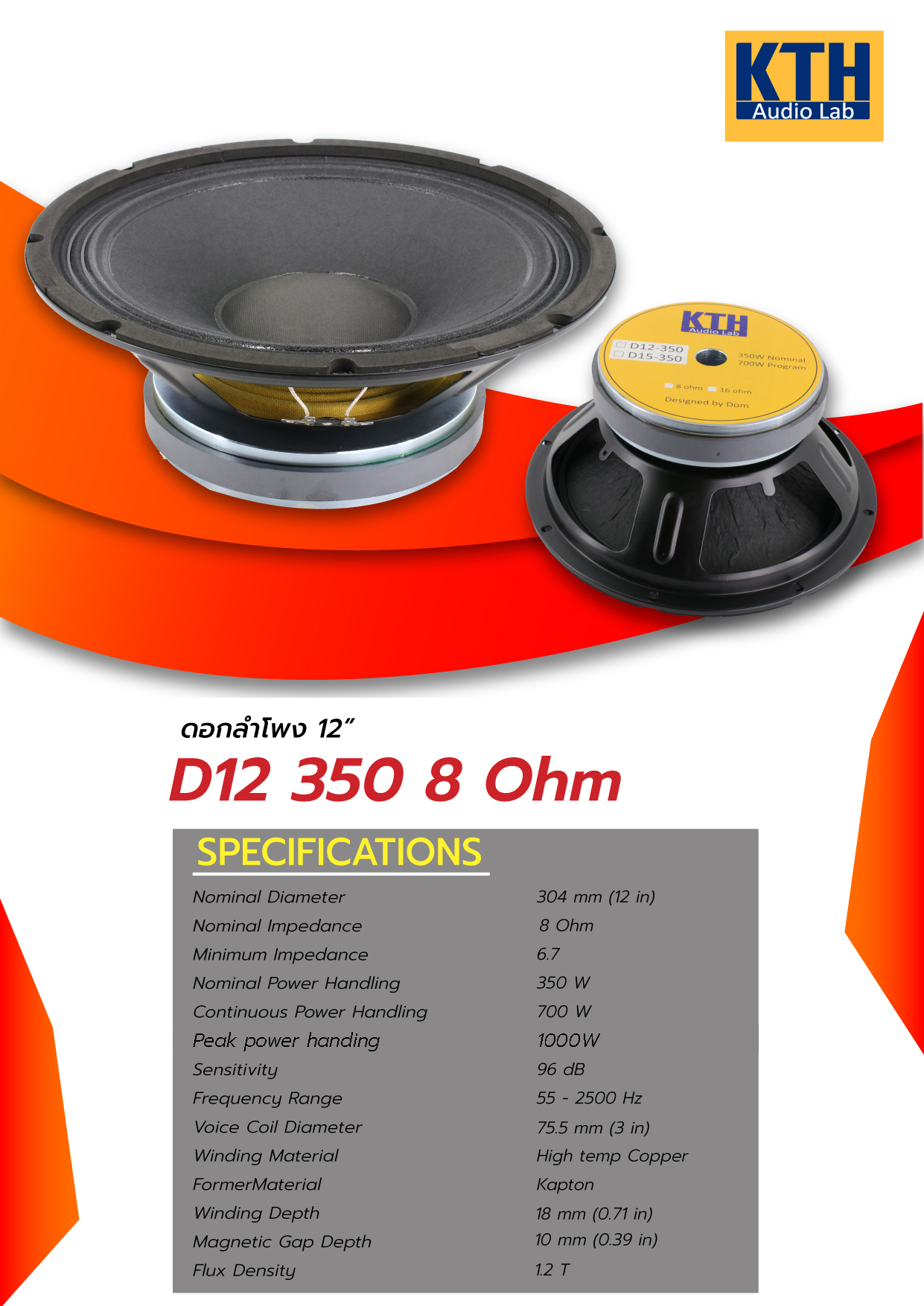 ดอกลำโพงขนาด 12 นิ้ว แบรนด์ KTH รุ่น D12 350 8 โอห์ม